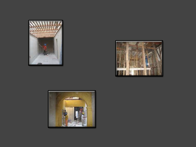 Reforzamiento con Zapatas Columnas y vigas de concreto armado. Tartajeo de muros con refuerzo de malla metálica. Vaciado de pisos nuevos. Ampliación de muros con sistema drywall.